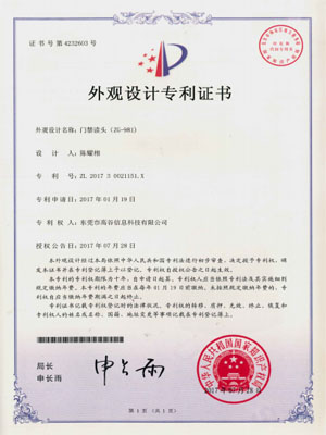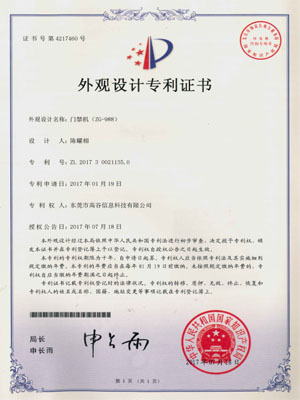 门禁机-外观设计专利证书