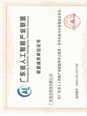 广东省人工智能产业联盟成员证书