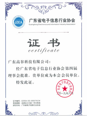 广东省电子信息行业协会会员单位证书