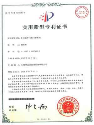 多功能开门的门禁系统-实用新型专利证书