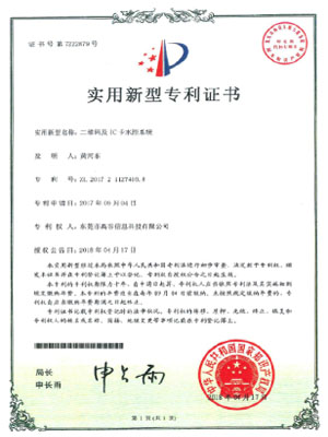 二维码和IC卡水控系统-实用新型专利证书