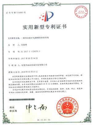 二维码和蓝牙电梯楼层控制系统-实用新型专利证书