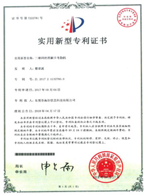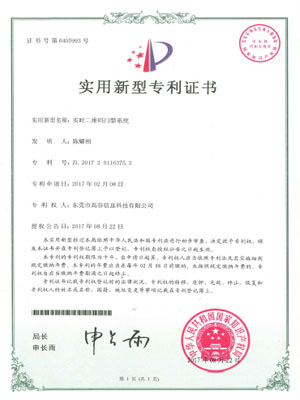 实时二维码门禁系统-实用新型专利证书