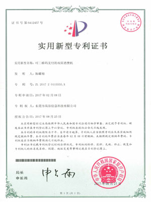 可二维码支付的双屏消费机-实用新型专利证书