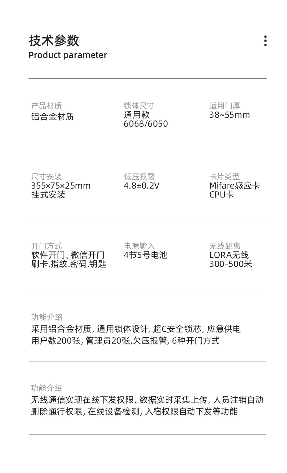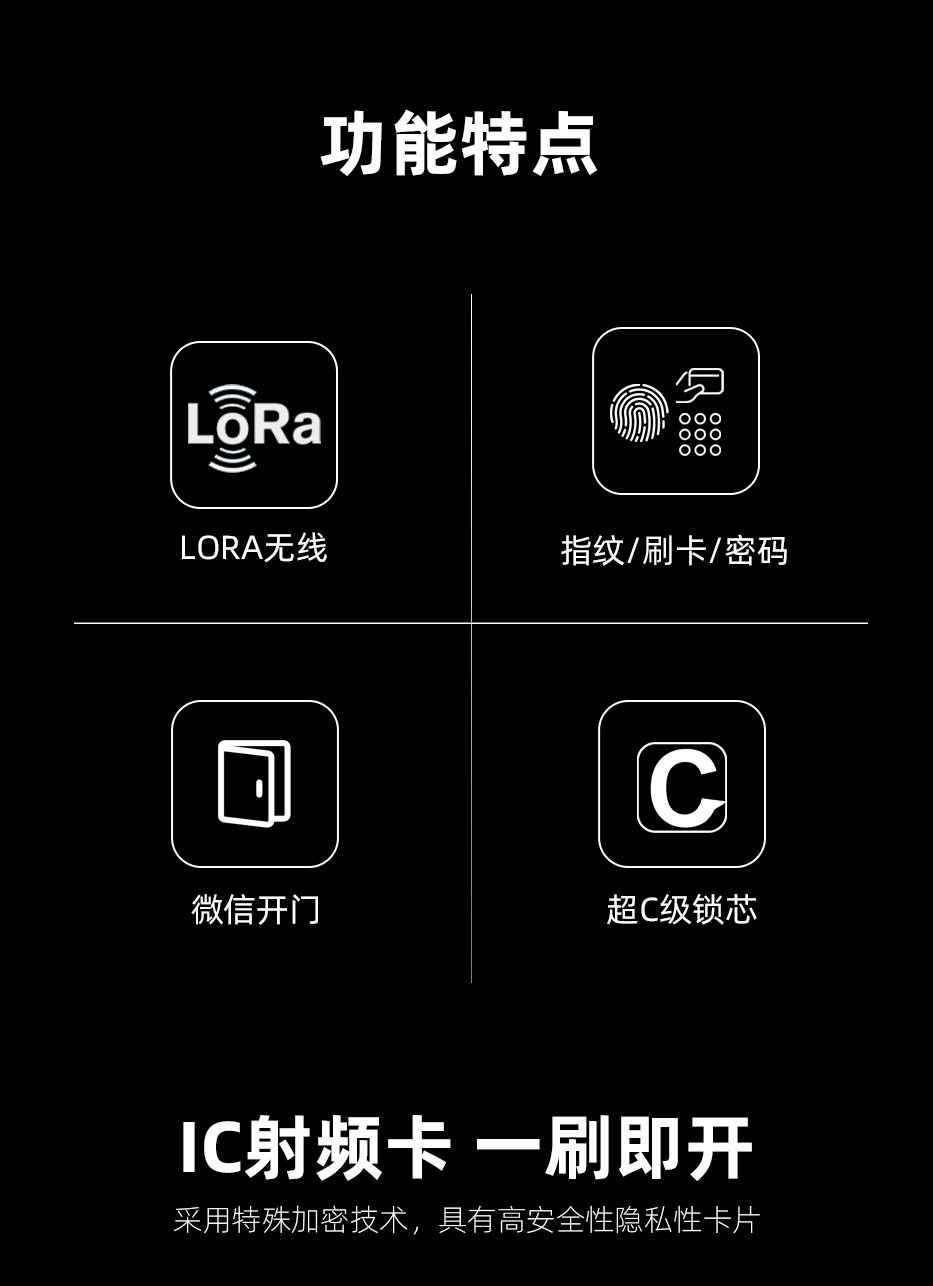 物联网一体门锁ER-LORAZW系列是依时利品牌,自主研发生产的新一代无线智能门锁终端产品,采用工业级Liux系统、LORA超低功率无线通信技术,多种开锁方式、国际一流工业设计标准,追求极致品质,具有通信稳定、传输速度快、使用时间长、外观时尚精美等特点。可用于企业宿舍门锁进出、学校宿舍门锁进出、政府宿舍门锁进出、写字楼宿舍门锁进出、洒店入住门锁进出等应用场景, 使客户的管理更高效、更智能、更省心。