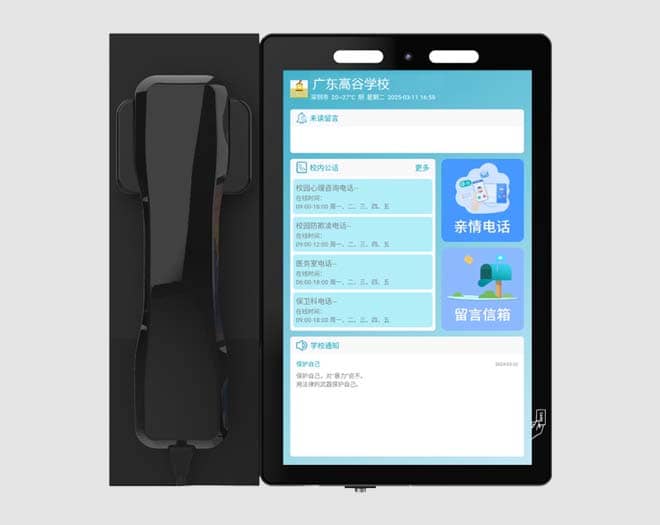 校园智能可视亲情话机,是聚焦智慧校园场景的专属亲情沟通载体,专为破解 “校园禁手机” 与家校联结的矛盾而生 —— 作为校园公共区域的标配话机,它深度适配校园走廊、教学楼、宿舍区的壁挂部署,是校园信息化建设中,打通亲情链路的刚需硬件。