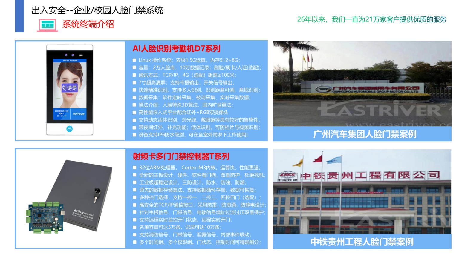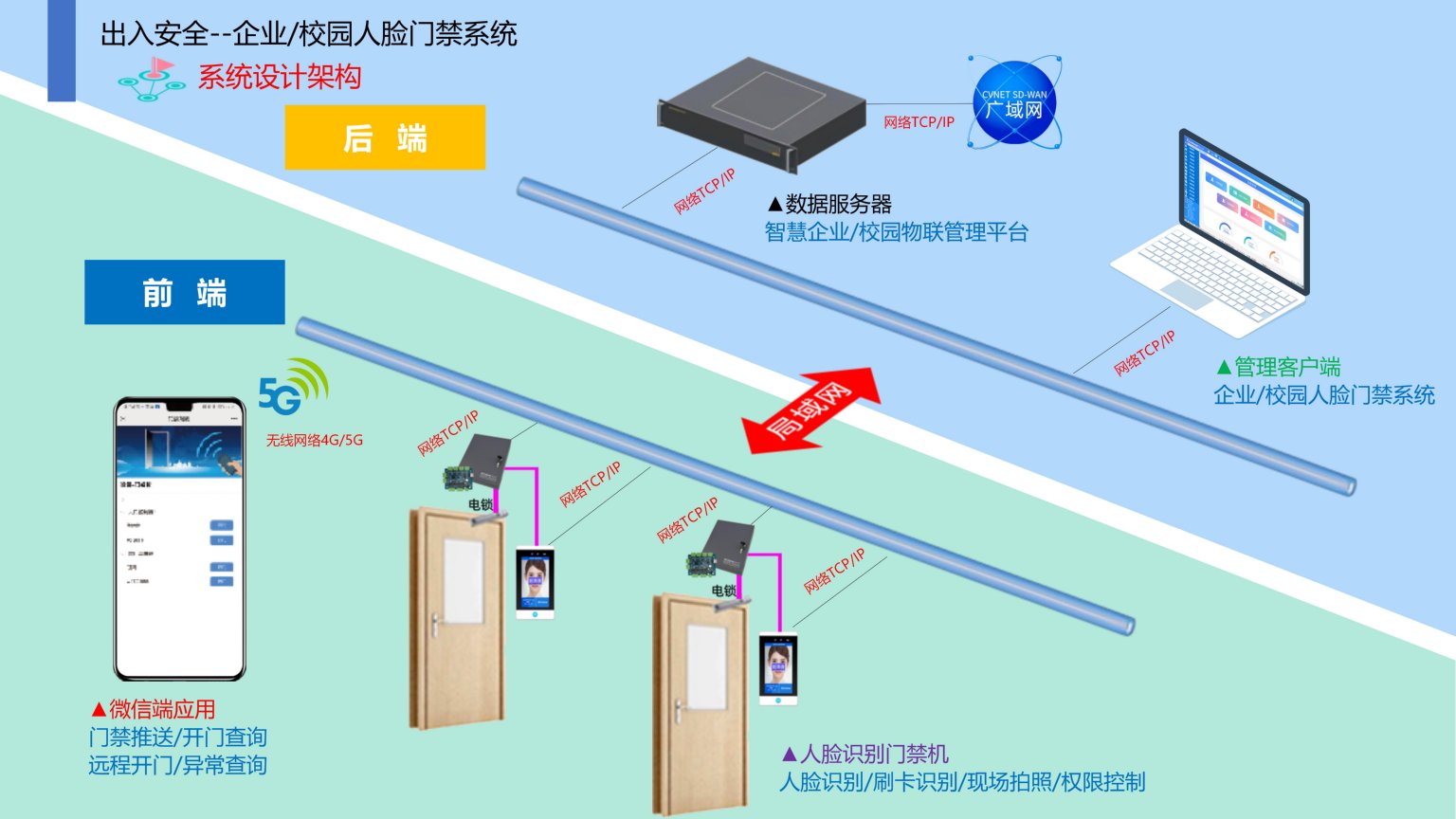 依时利企业/校园人脸门禁系统是通过统一管理平台/数据库/终端/手机端来实现综合管理,主要是对职工人脸识别或刷卡身份认证,认证合法门禁打开,应用在办公楼、车间、宿舍楼、研发楼、财务室等门禁区域管控,提高企业/校园区域安全管理的目的,严格的控制进出,防止外来人员随意进出。通过系统进行有效的权限控制,实现人员进出提供了可靠保障,为企业/校园安全信息化提升强大管理功能。