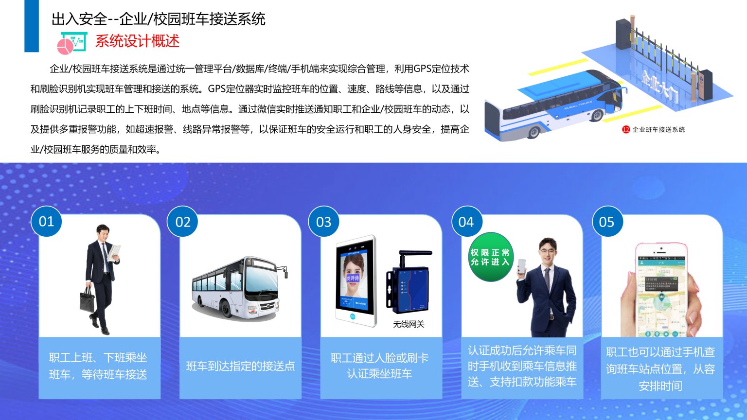 依时利企业/校园班车接送系统是通过统一管理平台/数据库/终端/手机端来实现综合管理,利用GPS定位技术和刷脸识别机实现班车管理和接送的系统。GPS定位器实时监控班车的位置、速度、路线等信息,以及通过刷脸识别机记录职工的上下班时间、地点等信息。通过微信实时推送通知职工和企业/校园班车的动态,以及提供多重报警功能,如超速报警、线路异常报警等,以保证班车的安全运行和职工的人身安全,提高企业/校园班车服务的质量和效率。