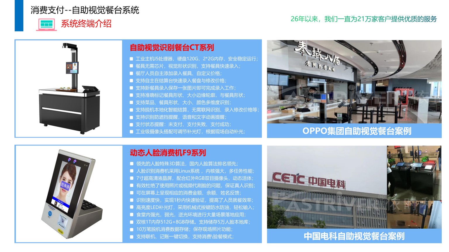 依时利企业/校园自助视觉餐台系统是通过统一管理平台/数据库/终端/手机端来实现综合管理,随着数字化转型的需求,传统的食堂管理对于智能化、数字化的改造需求变得愈加迫切,视觉餐台系统是一套基于人工智能技术,实时快速识别餐具、菜品、商品价格,顾客自助快速付款的结算系统。顾客将选好的菜品放置餐台识别区,摄像头通过视觉分析技术准确核算菜品价格,刷卡或刷码或刷脸等方式自助消费支付,节省打餐时间和人工成本,提升食堂的整体形象。