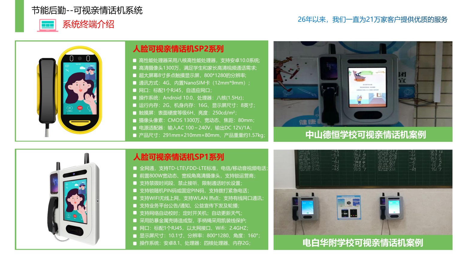 依时利校园可视亲情话机系统是通过统一管理平台/数据库/终端/手机端来实现综合管理,教育部办公厅印发的《关于加强中小学生手机管理工作的通知》要求中小学生原则上不得将个人手机带入校园。因政策的贯彻执行,让学生的沟通需求无法得到满足,在没有手机的校园里,需要为学生建立一个专用的通讯渠道,解决学生亲情通话需求,视频话机系统采用网络通话方式,通话成本远低于运营商通话收费,话机操作简单易懂,学生只需人脸识别成功后,即可拨打家长电话,提升学校整体形象起到极大的促进性作用。