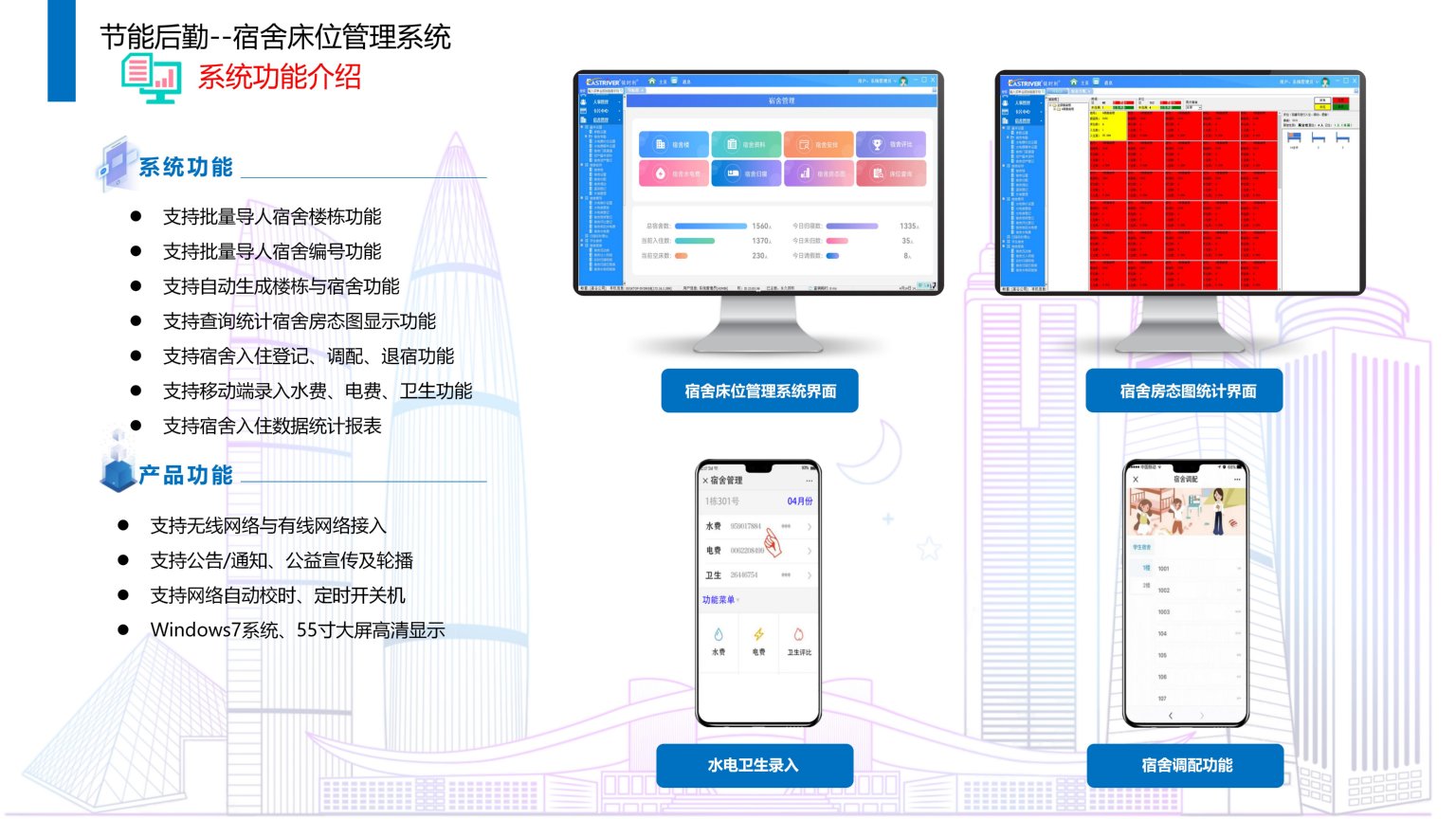 依时利企业/校园宿舍床位管理系统是通过统一管理平台/数据库/终端/手机端来实现综合管理,系统是一种可以对职工宿舍的床位进行分配、登记、查询和调整的系统,主要有楼栋管理、宿舍管理、床位管理、水电导入统计、卫生评比等组成。系统可以快速定位到房间号和床位号,方便职工入住和退宿。可以实时了解宿舍的空闲情况,优化资源利用率,提高数据准确性和安全性,通过报表管理,生成各种统计报表,辅助决策性安排工作。