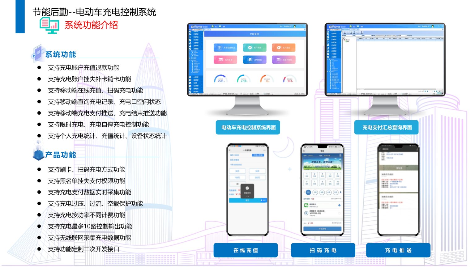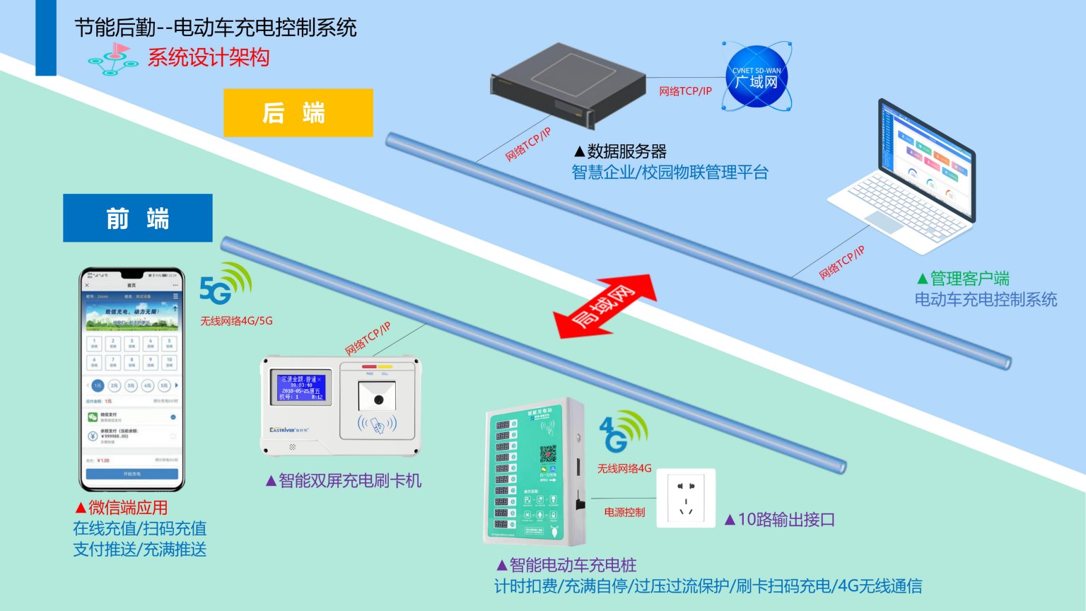 依时利企业/校园电动车充电控制系统是通过统一管理平台/数据库/终端/手机端来实现综合管理,实现为企业/校园职工提供便利的24小时无人值守充电服务,让职工不再为充电浪费时间,提供便捷、智能、人性化的服务项目。电动车充电控制系统是管理和控制电动车充电过程的系统,实现对充电电压、电流、功率、时间等参数的采集和调节,以保证充电的安全和效率,可以提供认证、计费、远程监控等功能,以方便用户和运营商的管理。
